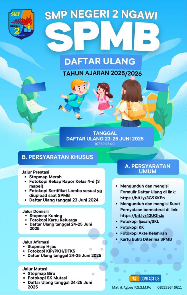 Berikut adalah informasi Daftar Ulang SPMB SMP Negeri 2 Ngawi Tahun Ajaran 2025/ 2026